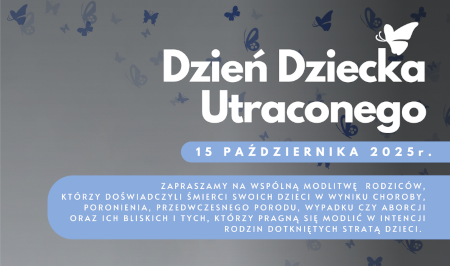 Serdecznie zapraszamy 15 października rodziny dotknięte dramatem śmierci swojego dziecka i ich bliskich, przyjaciół oraz wszystkich tych, którzy chcieliby podzielić się z nimi swoją modlitwą na Dzień Dziecka Utraconego w Sanktuarium św. Józefa w Częstochowie.